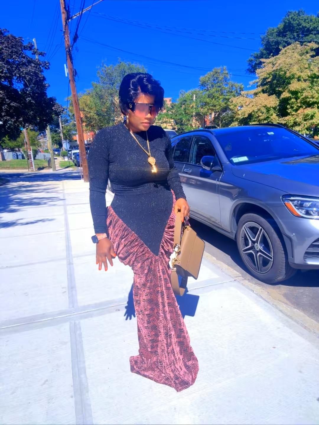 Command attention with this sophisticated Ankara fusion gown, blending modern elegance with African heritage. The fitted black shimmer top adds a touch of glamour, while the rose-gold patterned Ankara skirt with ruched detailing creates a flattering, feminine silhouette. Perfect for special occasions where style and culture meet.