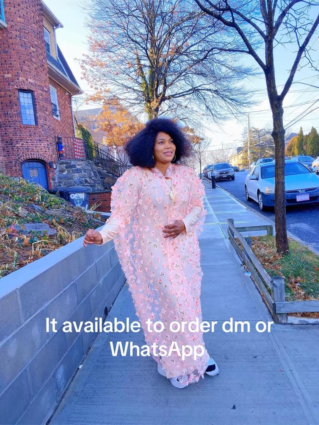 Step out in elegance with the Blush Blossom Luxe Boubou, a beautifully crafted flowing outfit designed for comfort and sophistication. This stunning piece features a soft blush pink tone adorned with delicate floral embellishments that add a touch of femininity and grace. The loose, free-flowing silhouette ensures maximum comfort while maintaining a regal appearance, making it perfect for casual outings, special gatherings, or elegant occasions. The lightweight fabric drapes effortlessly, allowing ease of movement and a flattering fit for all body types. Designed with long sleeves and intricate detailing, this boubou combines modern style with traditional charm, making it a timeless addition to your wardrobe.- Color: Soft Blush Pink